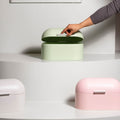 Op zoek naar een stijlvolle en praktische manier om je brood vers te houden? Maak kennis met deze prachtige groene broodtrommel uit onze Fresh-serie! Deze schoonheid is perfect voor beperkte aanrechtruimte en voegt meteen kleur toe met zijn trendy pasteltint. Hij is gemaakt van aluminium en metaal en zorgt ervoor dat je broden langer vers blijven terwijl hij er fantastisch uitziet op je aanrecht. Bedenk eens hoe moeiteloos chic en georganiseerd je keuken kan zijn met deze kleine toevoeging!