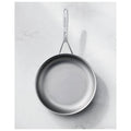 De Industry 5 bakpan van 28 cm met NanoTouch-technologie is ideaal voor het bereiden van royale porties voor 3 tot 4 personen. Deze pan behoort tot onze hoogwaardige Industry-serie en is opgebouwd uit een duurzame 5-lagenmateriaal. Deze opbouw garandeert een snelle opwarming en een perfecte verdeling van de warmte tot aan de randen, zodat je telkens gelijkmatig kunt bakken. De innovatieve NanoTouch technologie creëert een roestvrijstalen bakoppervlak met micro-oneffenheden die vetstoffen optimaal over de pan verdelen. Hierdoor bak je moeiteloos magere kip, delicate vis of krokante aardappeltjes, zelfs met een minimale hoeveelheid vet. Het oppervlak is bijzonder krasvast, waardoor metalen spatels of lepels geen probleem vormen. Deze pan is volledig PFAS-vrij en dus veilig voor dagelijks gebruik. De Silvinox®-behandeling beschermt tegen verkleuring en maakt het schoonmaken extra gemakkelijk. De pan kan worden gebruikt op alle warmtebronnen, inclusief inductie, en is ook ovenbestendig. Vermijd echter het gebruik van de boostfunctie op inductie, aangezien deze een te intense warmte afgeeft die het materiaal kan aantasten. De ergonomisch vormgegeven, gelaste greep ligt stabiel en comfortabel in de hand. Dankzij de solide lastechniek is er geen ruimte voor vuilophoping. De pan kan in de vaatwasser, maar voor een langere levensduur is handwas aan te raden. Tip: vul na gebruik de pan met warm water en een beetje afwasmiddel, laat even staan en maak daarna zonder schrobben schoon. Witte of doffe vlekken na het koken? Die verdwijnen eenvoudig met wat azijn of citroensap.